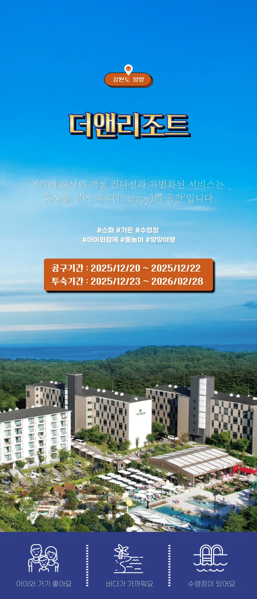 다온맘 X 더앤리조트 양양 패밀리 트윈(3~4인 PKG) (12/23 ~ 02/28)